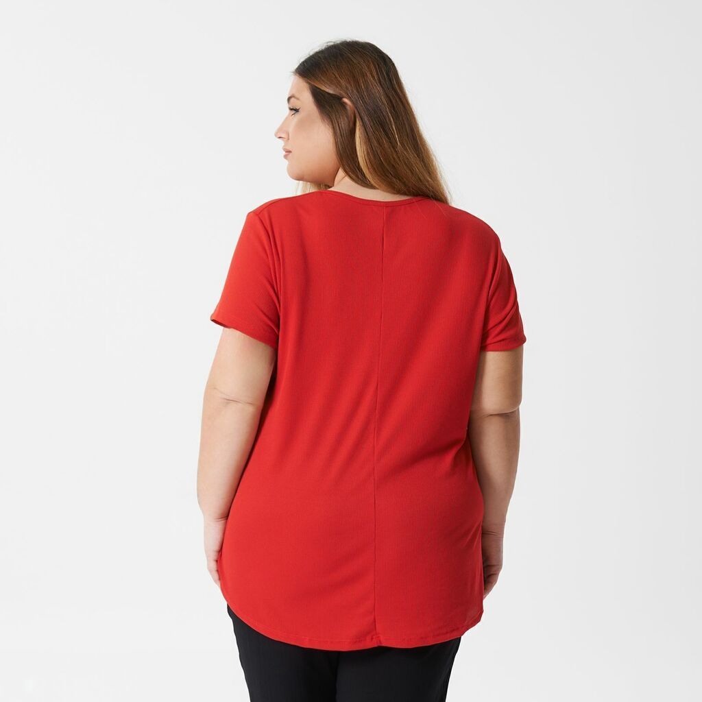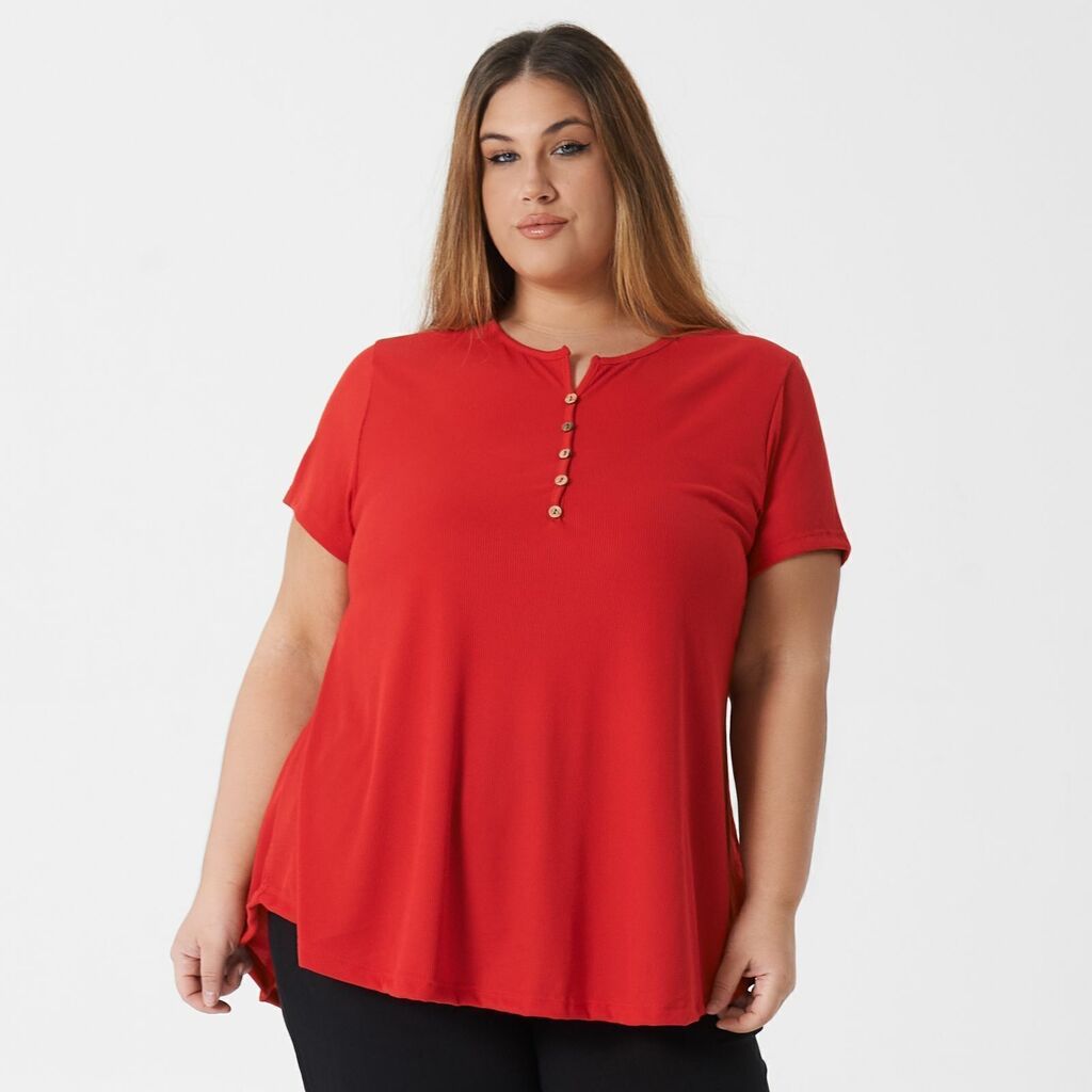 Remera manga corta con 5 botones en pecho, corte evasé.