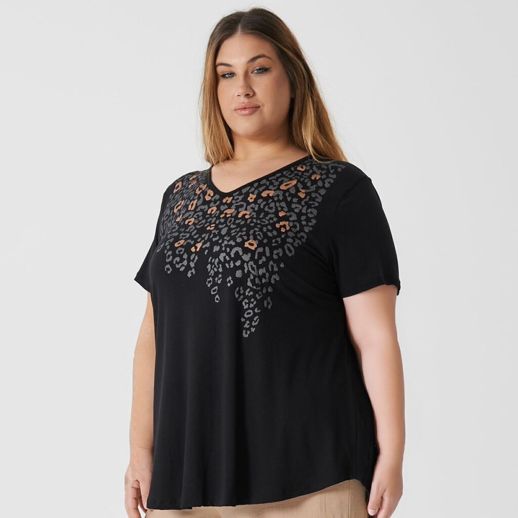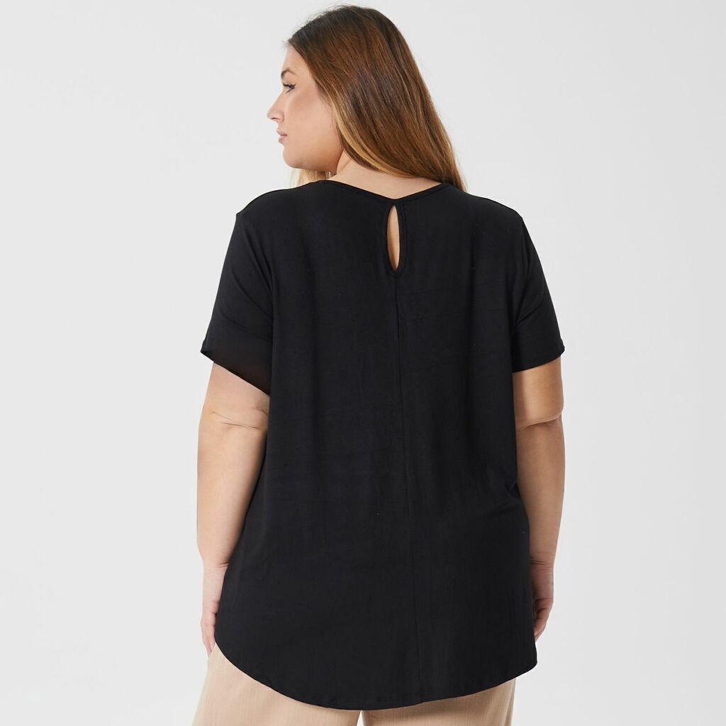 Remera manga corta con gota en espalda y corte tipo evasé.
