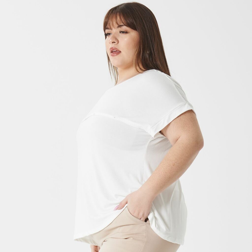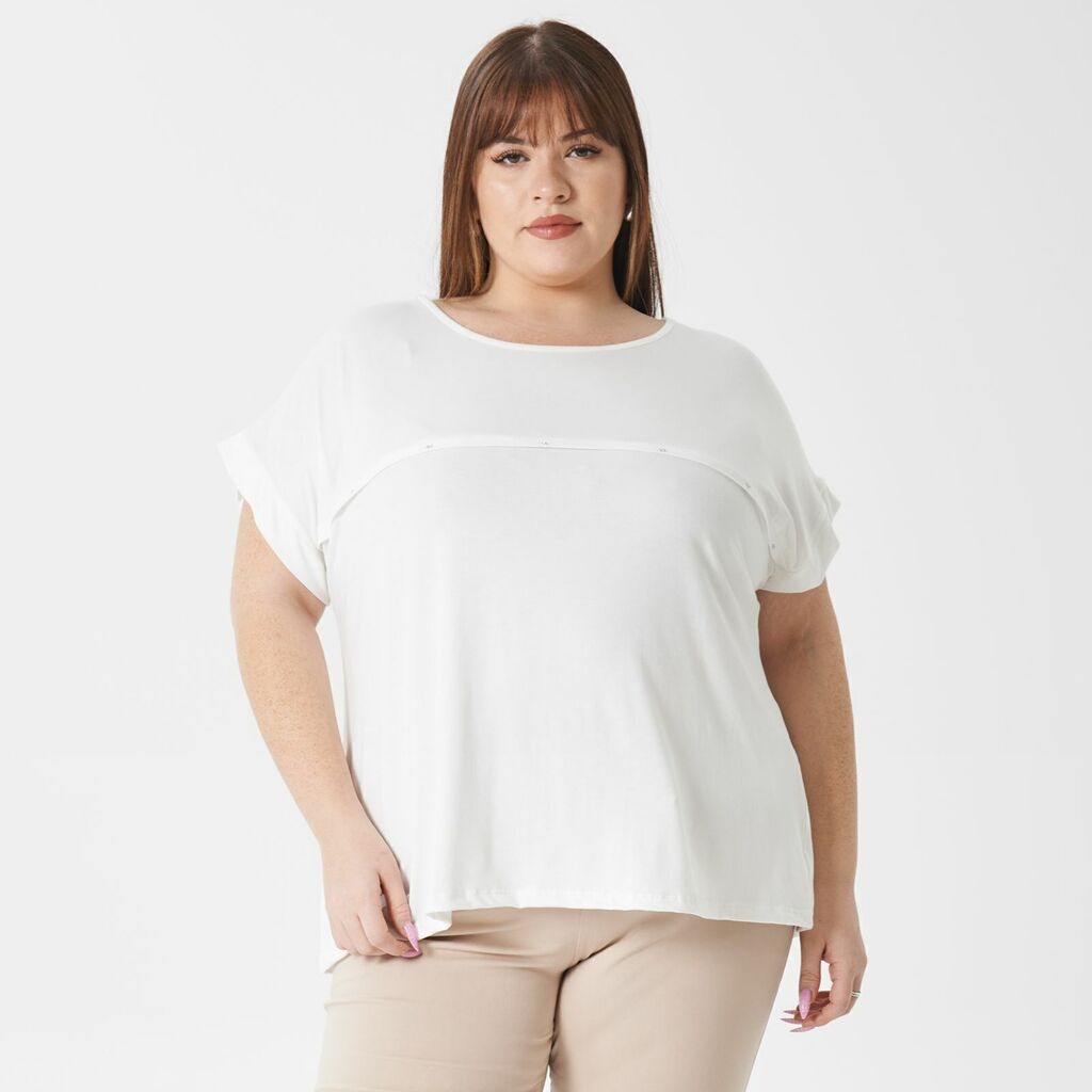 Remera manga corta con linea recta con tachas en pecho